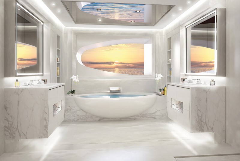 The AMELS 188’s smart layout maximizes guest enjoyment – from open decks with generous outdoor spaces to the lure of the 323 sq ft (30 square-meter) Beach Club and the Wellness Centre’s gym, sauna and Turkish steam shower. The full-beam Owner’s Suite covers almost 850 sq ft (80 square meters), and features a large folding balcony and mid-beam sliding doors for privacy.