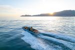 SX280i “Collezione” is the ideal choice for an eclectic owner, who wants to alternate water sports with days of pure relaxation at sea, and who desires a boat that shares their versatility: high-performance, comfort and extreme elegance. Hull and deck are painted in an elegant Blue Ulisse, well matching the rich Cognac cushions on the deck and the Sunset Gold dashboard.