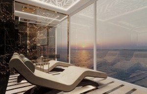 The Regent Suite’s in-suite heated relaxation loungers and walk-in shower feature floor-to-ceiling vista views