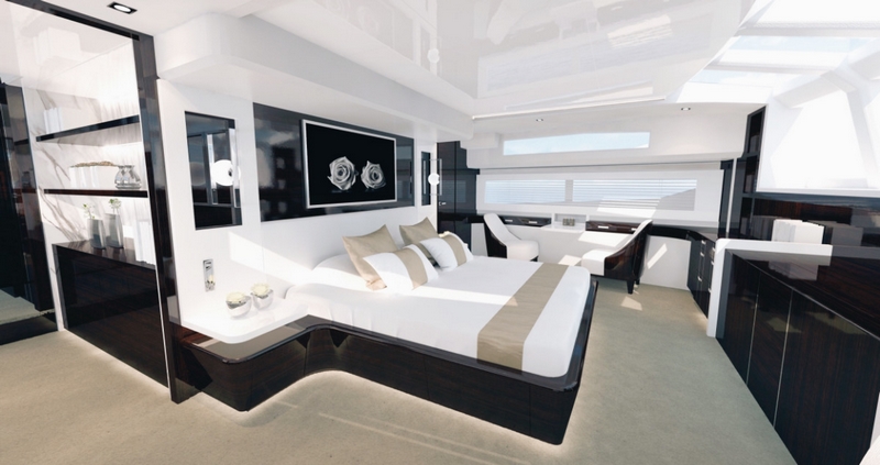 The new Pearl 95 will feature exclusive Kelly Hoppen luxurious interior design, on par with the impeccable standards expected by superyacht owners. Also the feedback from past and current Pearl Yacht owners has strongly influenced the development of the new 95: the owner’s cabin is located forward on the main deck and features a full beam design maximising space and creating a class leading cabin. The main deck saloon is