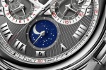This calendar is recognisable by its large twin-aperture date display, complemented by indications of the day and whether or not it is a leap year, while the finishing touches are set by a day/night indication and an orbital moon-phase display. The latter guarantees graphic and accurate readings of the age of the moon, with a mere one-day deviation in 122 years. Since the original configuration of this calendar uses the same areas as the chronograph – both involving indications at 3 and 9 o’clock – the architecture of the perpetual calendar had to be adjusted to offset the day/night indicator by a few millimetres. This arrangement determined the specific layout of the dial and its counters.