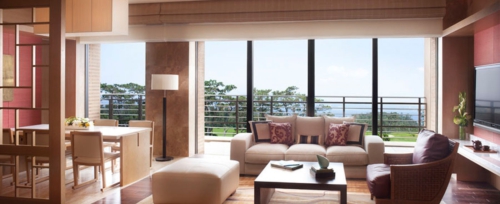 The 97 guestrooms and two suites of the Ritz-Carlton, Okinawa have balconies or terraces which enjoy sweeping panoramic views that overlook the East China Sea and the Kise Country Club. Inspired by the scenery of ancient forests, manicured golf courses and the sea, the resort has been designed to be in harmony with its natural surroundings.