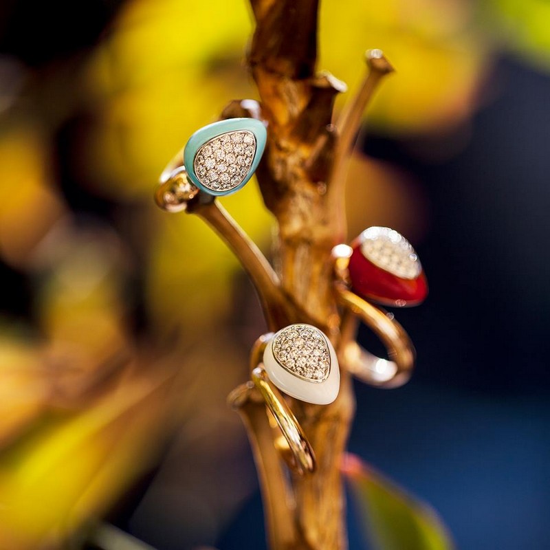 Shapes and colors of Capri and the Mediterranean tradition are reinterpreted in the new Cherie rings.