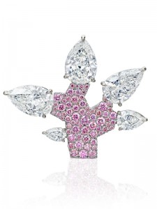 sothebys diamonds 2015-pink-diamond-tree-of-life- 6.43-carat brooch with five pear-shaped diamonds and pavé detail is a stunning interpretation of flora