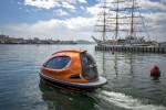 Measuring more than 24 feet in length and 11 feet in width, the watercraft is completely customizable. The cabin can be fit with beds, bathroom, kitchenette, or use the space as a tender.
