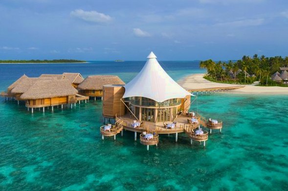 You can toast to an unforgettable trip as soon as you check-in at the private resort, as you’ll receive champagne upon arrival. Also, you can choose from many activities to fill your days with memories. For example, start your day off right at the Baa Atoll, an extraordinary UNESCO biosphere reserve. It will allow you to experience the beauty of the Maldives’ coral reef system, and you can even swim alongside tropical fish and manta rays.