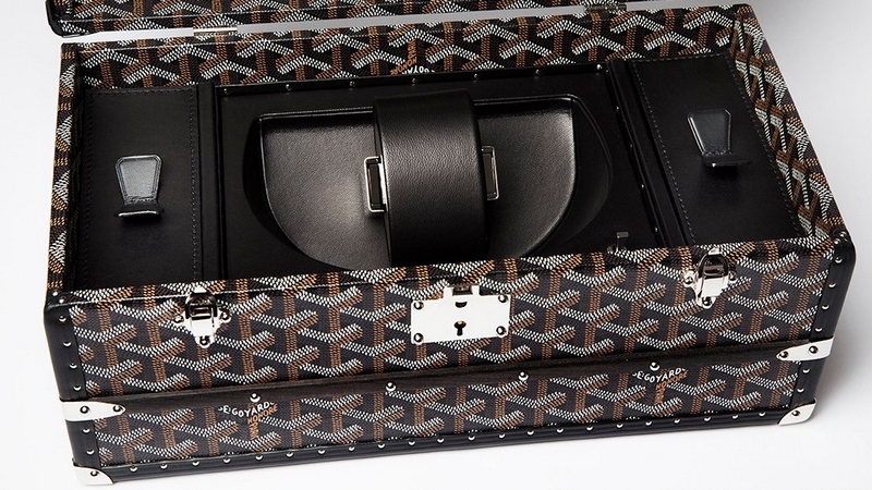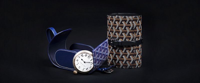 For timepieces are a traveller’s best friends, Maison Goyard has always paid a special attention to them, as clearly evidenced by one of its moste mblematic creations: the iconic wardrobe trunk is equipped with a special compartment tray ingeniously built into the upper drawer, and conceived to safely store a traveller’s most valuable items: jewellery, cufflinks, collar stays and, above all, a most necessary alarm clock…