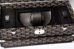 But inside hides another face: a silky lambskin interior in the form of a case for a two-directional rotating winder mechanism made in Switzerland specially for Goyard, perfectly simulating movement of the wrist.