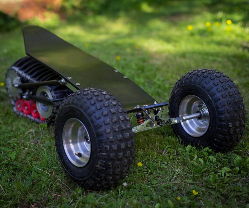 It was in the winter of 2016 that Michael Menendez from Seattle-based Flux Design Co. envisioned the Track1. The track-drive is the first of its kind, extraordinarily unique due to the traction of a tank combined with smooth handling. This is an all-season, all- terrain vehicle comparable to a personal ATV. It can ride snow, sand, dirt, and street, says the inventor of the world’s most capable off-road eBoard, now in a prototype stage with a funding campaign on indiegogo.