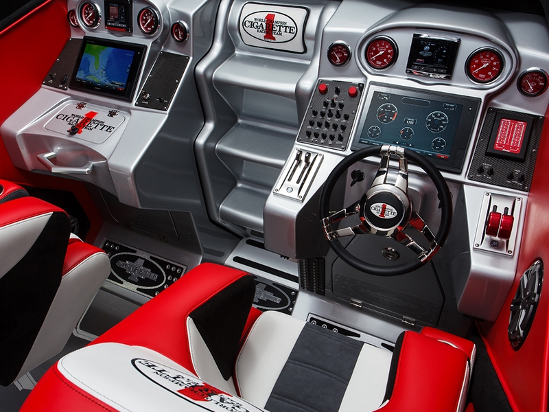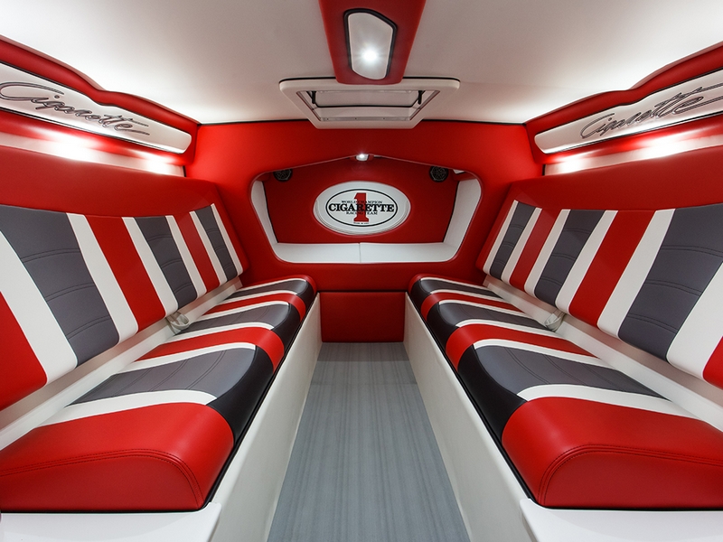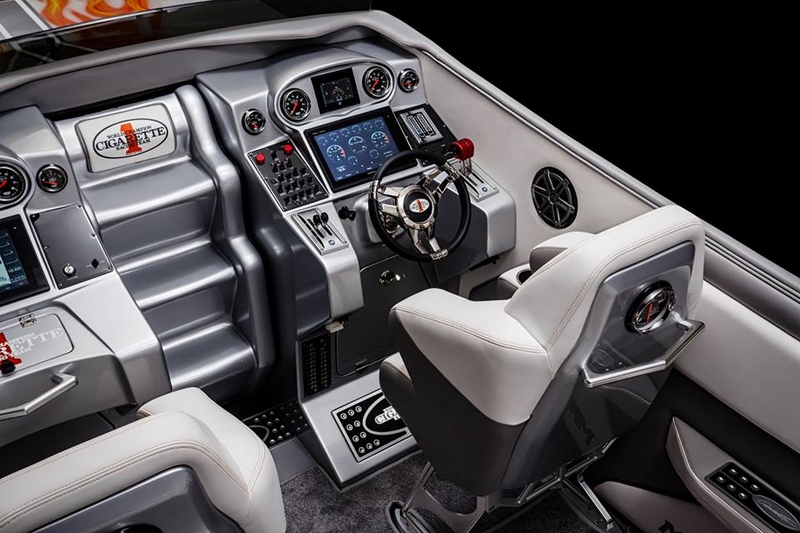 The consoles, the upholstery, the details-are all new, yet completely Cigarette. The result is awe-inspiring glamour in a performance boat.