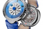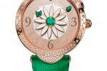 Unveiled in 2015, the Marguerite watch, is already available in five different white gold or 5N redgold versions adorned with “snowflake” or “champagne” setting and featuring vivid shades of blue,red and green depending on the version.
