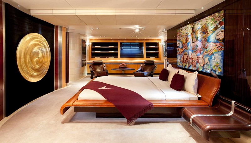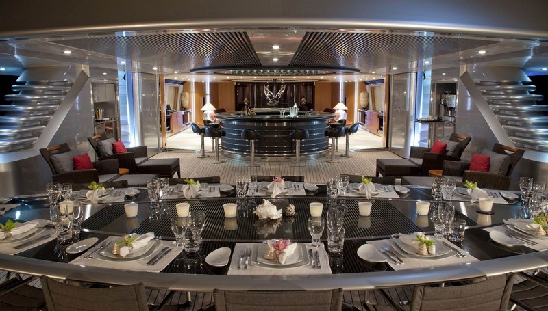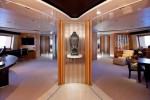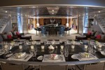 Maltese Falcon’s luxurious interior offers accommodation for up to 12 guests across six cabins. Her spacious saloon is a fine place for social gathering and relaxation, plus a formal dining area comfortably sits 12. On deck, further options for al fresco dining are offered or for fun in the sun, try some of her watertoys, which includes jetskis, stand up paddle boards, scuba diving equipment and an inflatable slide which can be attached to the upper deck.