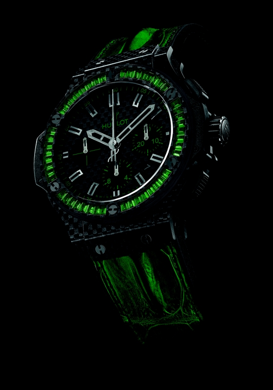 Hublot’s novelties included BIG BANG CARBON BEZEL BAGUETTE – a fusion of carbon fibre and precious stones. Hublot has taken the Full Carbon concept to its ultimate expression, by successfully setting baguette-cut precious stones in a component – the bezel – made from carbon fibre.