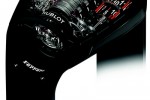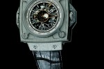 MP-05 “LaFerrari” watch is featuring a complex shaped sapphire crystal clearly reminiscent of the car’s outline, as well as an open case-back, and is made from black PVD titanium. It is topped by a titanium and carbon insert in its centre, revealing the winding crown. The time-setting crown is positioned under the case. Both are completely integrated into the design, and therefore practically invisible. Hublot MP-05 “LaFerrari” is limited to 50 numbered pieces.