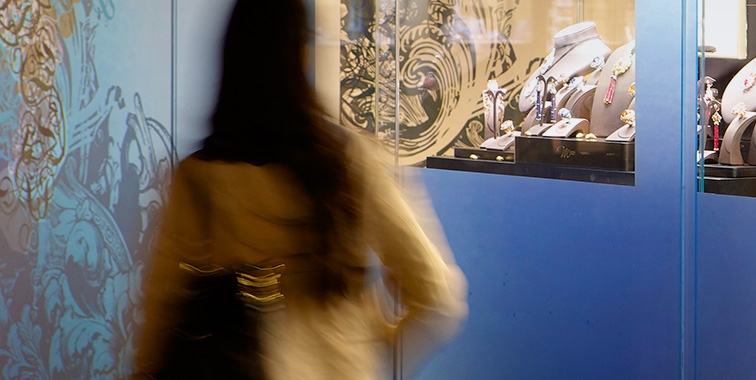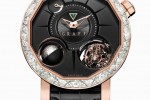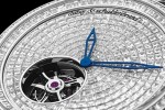 The perfect union of watchmaking and jewellery, this new timepiece from Graff shines the spotlight on a gyroscopic moon phase and a double-axis tourbillon, no less. The bezel is embellished with a mosaic of diamonds in a stunning and patented invisible setting, the work of the jeweller’s master craftsmen using a technique which took one year to perfect. This sculptural composition is formed by three rows of diamonds, with two triangular diamonds surrounding a hexagonal diamond.