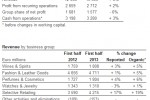 In the first half of 2013, the Watches & Jewelry business group recorded organic revenue growth of 1%. Profit from