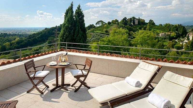 Villa Cipriani was designed by architects of Andrea Palladio’s school, back in 1500 as were the gardens. Palladian villas were originally built as leisure second homes where wealthy Venetians would spend summers away from the heat of the lagoon. The gardens were places where social life was conducted, conspiracies were plotted and romances bloomed. Villa Cipriani’s garden through centuries has maintained the original landscaping, as a terraced garden overlooking the surrounding woods and the mountains, the “thousand horizons” that gave the town of Asolo its nickname. The garden changes color and scent with every season and its unique charm endures through centuries.