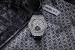 Swiss luxury watchmaker Hublot teams up with high-end luxury brand Karmaloog, a house specializing in ultra-luxury garments and accessories, for the launch of a unique jacket and watch set in a partnership that combines fashion, haute horlogerie and cutting-edge technology. Karmaloog designed a bullet resistant jacket made of the finest crocodile leather and combined it with a Hublot Big Bang Tourbillon Croco High Jewellery (diameter: 45 mm) embellished with 16.41 carats of diamonds.