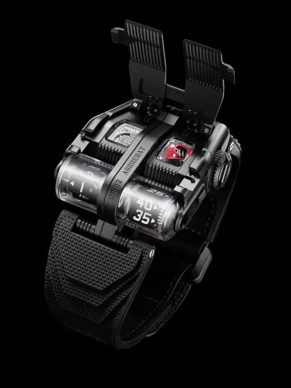 Urwerk UR-112 Aggregat Back to Black comes in a steel and titanium body with a complex architecture.