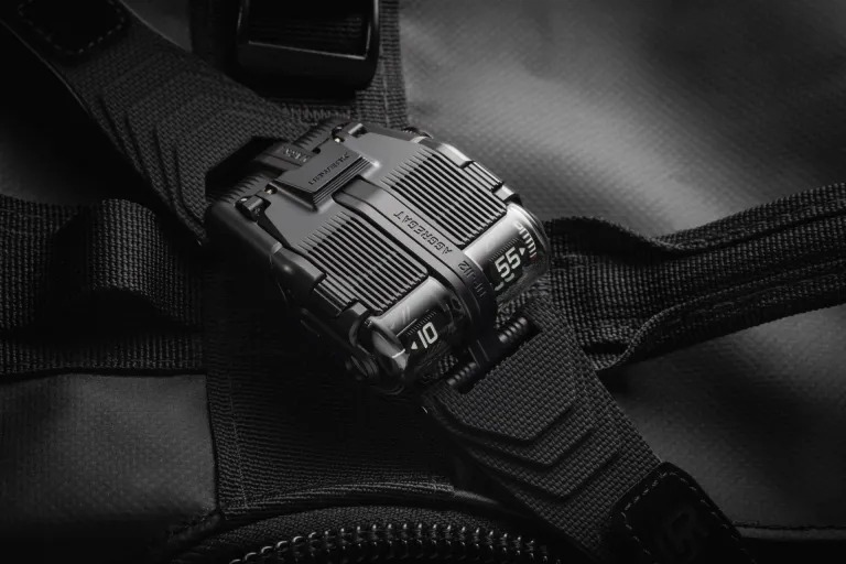 The UR-112 Aggregat Back to Black belongs to the Special Project line. This is a departure from the founding concept of URWERK’s wandering-hour indication, on a whole new scale, with new volumes for the UR-122 Aggregat and its UR-13.01 caliber.