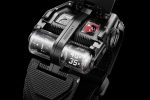 Let’s start with its upper part. Its steel bonnet is grooved and openworked. It gives a glimpse of the richness of this gleaming speed machine. This cover opens vertically to give access to the secondary power-reserve and digital seconds indications. Its central titanium body is satin-brushed, sandblasted and beadblasted, thereby forming a field of functional microdots. The two blackened steel wings of the UR-112 Aggregat Back to black fit into this central body. Each zone, each space, each element has its own texture, its own finish, its own language.