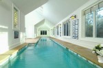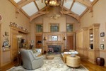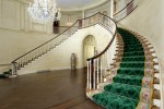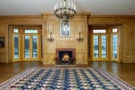 The main floor of the home features an exquisite entrance with a three-story chandelier-lit rotunda anchored by a butterfly stairway. Other highlights include a library with antique paneling, marble fireplace and built-ins; a living room with intricate millwork and a 19th century fireplace; a spacious dining room that can comfortably seat 20; a cinema with seating for 22 people; an indoor and outdoor pool; putting green and all-weather tennis court.