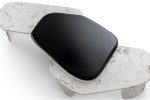 One of the coffee tables is available in a Paper Factor® version designed by Riccardo Cavaciocchi. It is made from a “raw paper” micro cellulose compound and natural pigments, processed to obtain a tabletop that is like marble and available in monochrome or with burgundy accents.