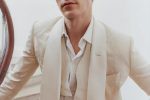 Next, we have mix and match. At modern weddings, there’s no need to stick to matching suits. Contrasting pieces can add interest and style to your outfit. A navy blazer paired with cream trousers is a classic combination that always looks sharp. Just make sure that the cut of each piece is similar, whether it’s loose with loose or slim with slim. To add a touch of color, try introducing prints through your shirt.
