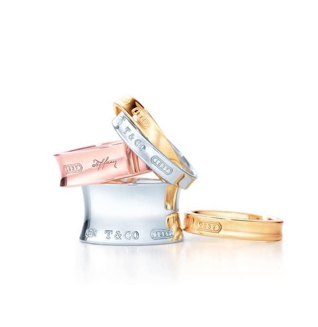 Tiffany 1837 rings in 18k gold, sterling silver and RUBEDO metal