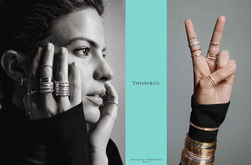 • Cameron Russell, an American supermodel and activist, is featured wearing Tiffany T two rings and Elsa Peretti Diamonds by the Yard.