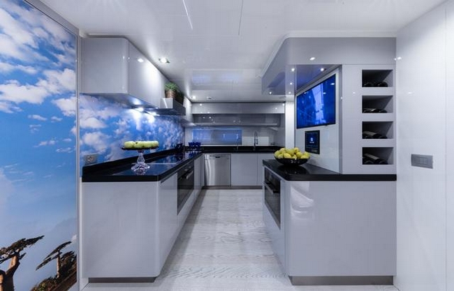 Discover the world’s most prestigious gatherings & exhibitionsA VIP suite and a guest cabin (with bunk beds and a bathroom that also serve as a day-head) are on the lower deck, along with the galley/dinette and crew accommodation. There is also a cosy sundeck lounge with private access from the owner’s suite. The 3.8m tender is housed under a carbon fibre hood on the foredeck.