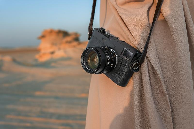 The all-metal body, high-quality aluminum top plate, sapphire glass display, leatherette covering, and scratch-resistant black finish contribute to the camera’s timeless appeal. Details such as the omission of the Leica logo and dark chrome-plated coating of the optical viewfinder accentuate the camera’s understated, iconic design.