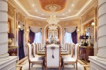 Designed by an Egyptian-based design house, the villa boasts ornately carved furniture featuring perfect craftsmanship sensuously placed in a pompous surrounding.