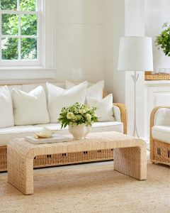 Aerin veranda styled with natural textures and light shades perfect for summer