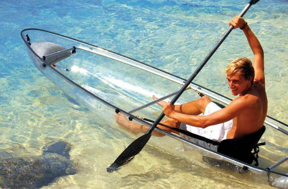 Enjoying the oceans depths in a glass bottom boat is an experience that can be fulfilled with an invisible kayaks, an Clear Blue Hawaii invention. With polycarbonate kayaks (Molokini and Napali transparent model) we can view of up 75 feet underwater.