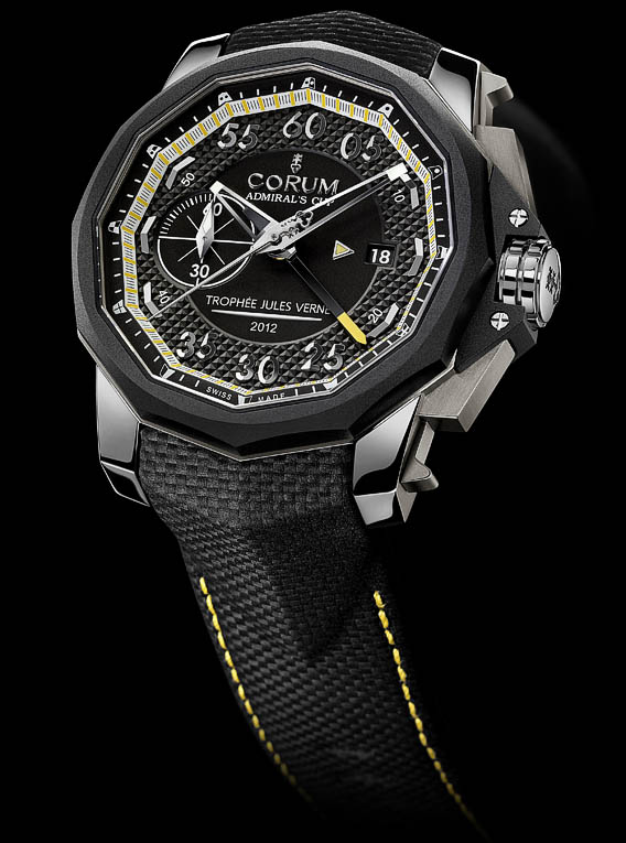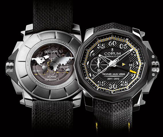 Last year Trophee Jules Verne for sailing around the world with no stopovers and no assistance went to the Maxi Banque Populaire sailboat. Each of the crew members and the Banque Populaire as the ship owner received dedicated personalized timepieces from Montres Corum, the high-end watch manufacture founded in 1955 in La Chaux-de-Fonds, Switzerland. The 19 watches were created on the basis of the Corum Admiral’s CUP model in titanium personalized in the colors of the trophy.