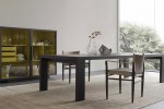 A contemporary and eclectic design for the Cubo and Totem bookcases. Rational details and a versatile dimension characterise these two pieces—one with a front door, the other entirely open—defined by the wenge-dyed oak structure. Contrasting containing elements in varnished wood with a matte finish and burnished steel details complete the design with its full contours.