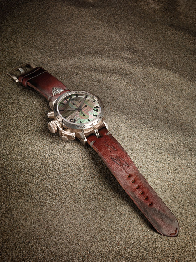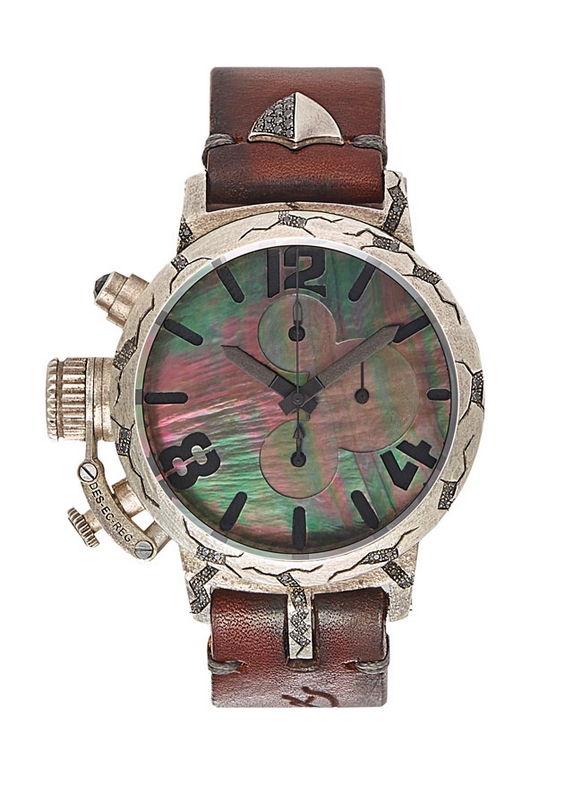 Discover the world’s most prestigious gatherings & exhibitionsOne of the five new U-Boat watches is U-Boat Phoenix, a timepieces developed on the Classico design. This limited edition chrono watch features a mother-pearl dial. The 48mm case received “martellée” finishing and it has been partially drilled, in order to create small cracks in the sterling silver 925 material. The small cracks have been patiently filled by Italian craftsmen with 180 black diamonds.