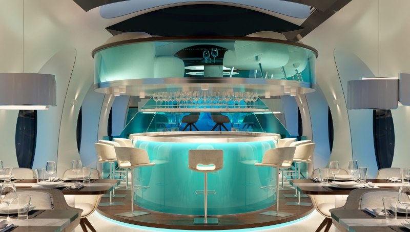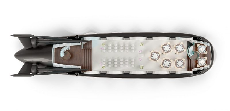 The “Under Water Entertainment Platform”, or UWEP for short, is a completely autonomous submersible with capacity for up to 120 guests, excluding crew. Guests will experience diving to depths up to 200 meters in comfort and style, and are free to walk around just as they would aboard a cruise ship.