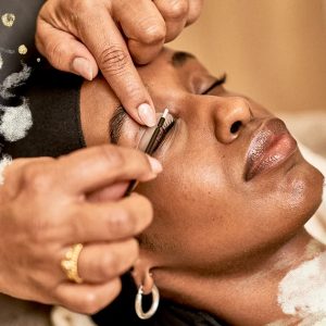 Client having a bespoke eyelash extension treatment done