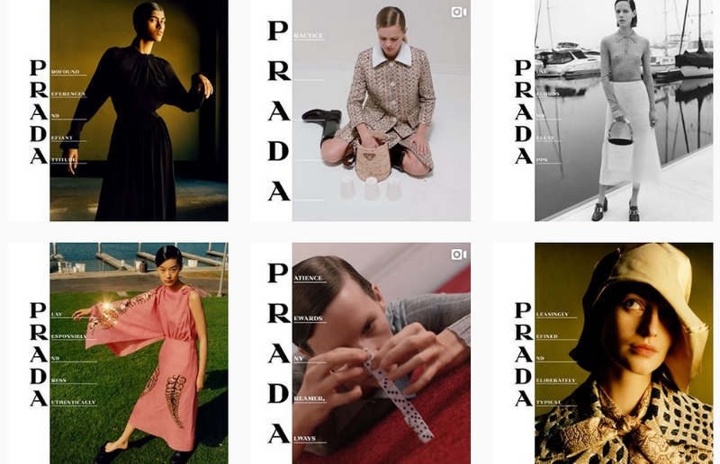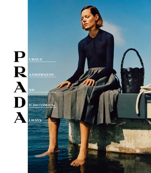 The Prada campaign revolves around a series of written acronyms, spelling out the word PRADA.