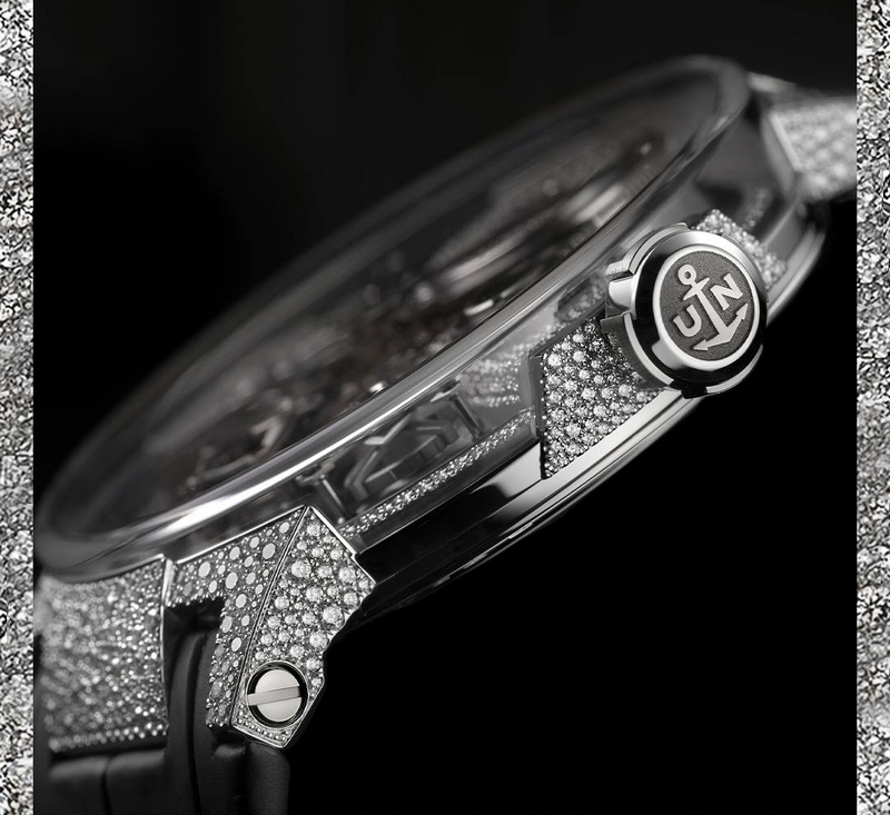 The diamond setting technique used on this timepiece, known as “snow setting”, is a complex process performed only by highly trained craftsmen. In a snow setting, the diamonds of different sizes are placed side by side to completely cover the surface, like a fresh blanket of Swiss snow. The craftsmen of Art Setting, a Geneva-based workshop, have been perfecting this process for over three decades. Ulysse Nardin and its parent company, Kering, are dedicated to sustainability, endeavoring with each innovation to leave Earth a better place for future generations.