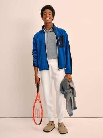 A true standout in the collection is the fleece full-zip jacket, uniquely accented with a breast pocket in a different material. This distinctive touch adds an unexpected twist to the classic design, embodying the essence of JW Anderson’s innovative approach to fashion.