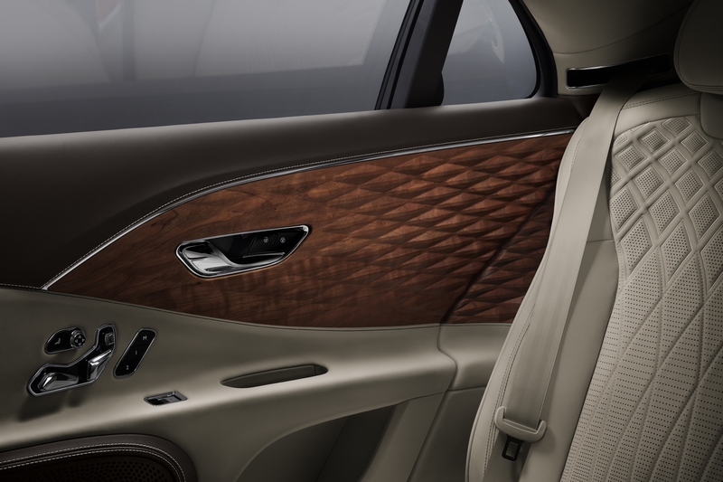 Bentley is offering a ground-breaking new Three-Dimensional Wood rear door trim for the first time, launched today for the all-new Flying Spur. Each rear door and quarter panel is handcrafted from a single block of sustainable American Walnut or American Cherry timber, in a harmonious marriage of traditional skills and modern technology.