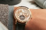 This ultra-thin movement with its 188 components has made it possible to offer an 18K pink gold case with a total thickness of 11.21 mm and a 41 mm diameter that is suitable for all wrists. The finishing of Calibre 2160 offers the same high level of quality as the embellishment of the dial. The bar of the tourbillon carriage is entirely hand-bevelled, as are the movement components. The mainplate is circular-grained on the dial side, while the bridges are adorned with Côtes de Genève on the back. Paired with a black, deep blue or brown alligator leather strap, depending on the model, secured a folding clasp and available in a limited boutique edition of 16 timepieces for each dial colour, this watch embodies a perfect symbiosis of artistic crafts and fine watchmaking.