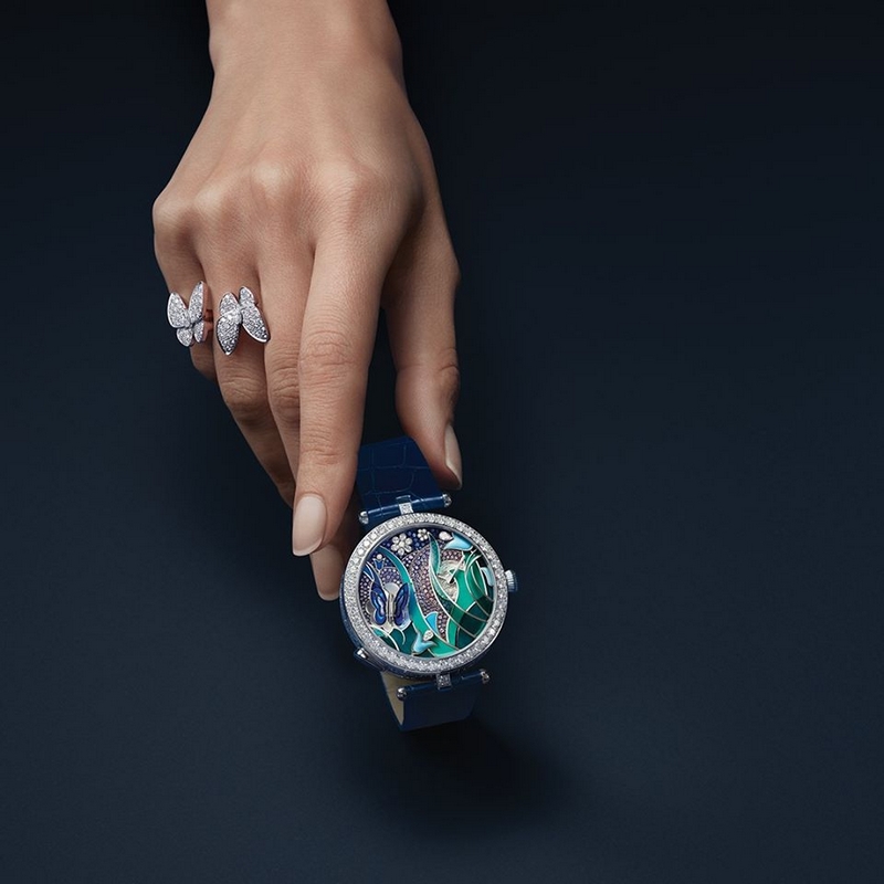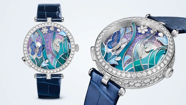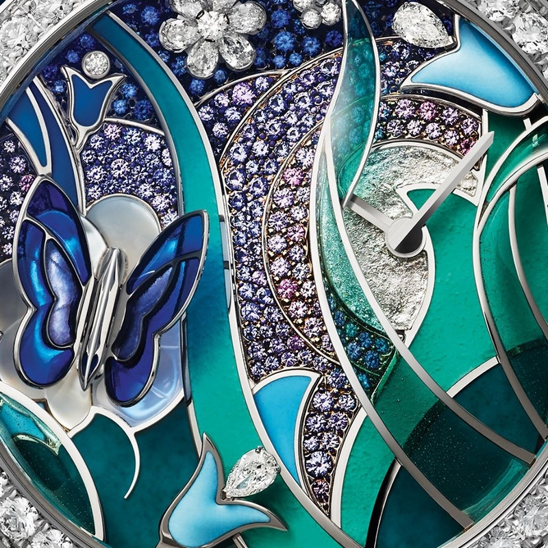 Lady Arpels Papillon Automate from Van Cleef & Arpels incorporates some unique features like plique-à-jour technique enabling light to pass through the enamel and the automation of the butterfly.