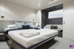 Storage space has been subject to careful scrutiny in the luxury areas too in order to make life easy for owners and guests during extended stays. Overnight expeditions will be a pleasure thanks to the forward owner’s suite and two double guest cabins. With accommodation for two crew members also included, the onboard service levels will be high. Last but not least, a Seakeeper 26 will ensure maximum comfort at anchor.