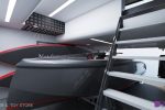 The elegant and sporty interior will continue the cool exterior ascetic with carbon fibre finishing, lots of play with light features, dark faucets and an absence of wood finishes. The large saloon has an additional outside sitting area to relax or watch the angling action. Good-sized refrigerators, large televisions, DJ panels and a wide selection of other entertainment facilities will provide a top-drawer after-fishing vibe.