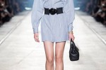 From belted blazers to roomy utility jackets and power suits with loose trousers, many of the silhouettes were uncharacteristically boxy and oversized. There was still skin on show – lots of signature mini-dresses remained and coats were layered over crop tops or styled with the tiniest of shorts underneath. But some of these pieces, when worn in the everyday world with shirts or trousers, could look positively covered-up.