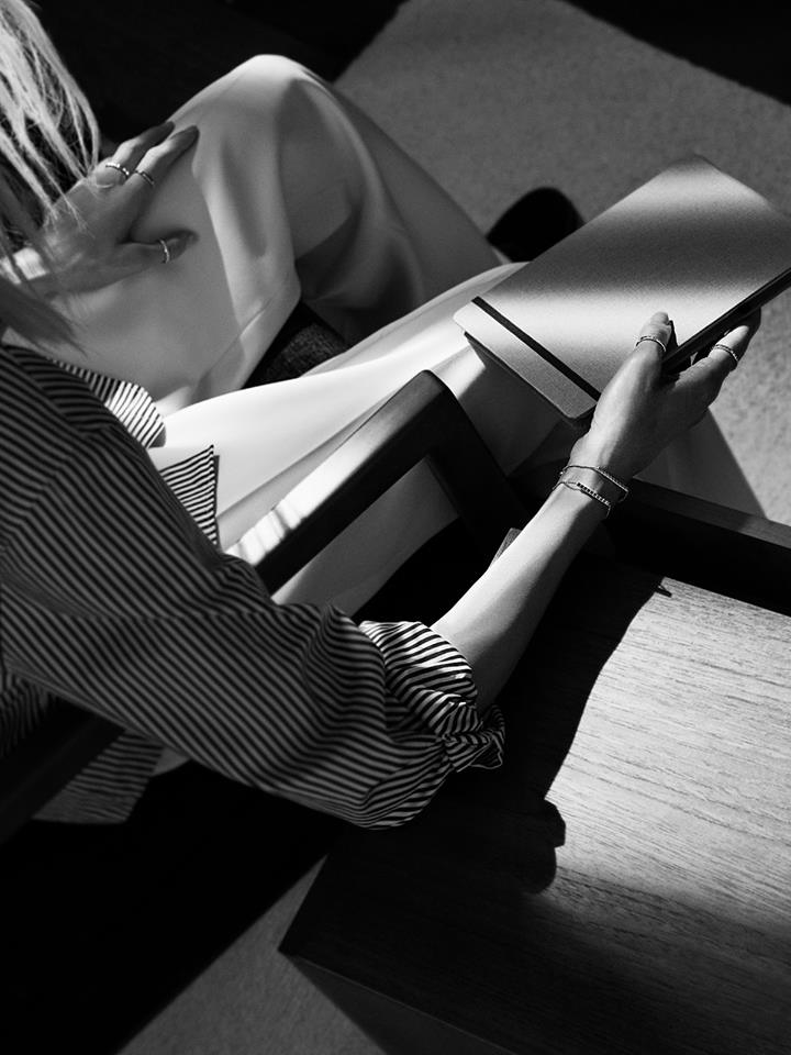 Pile-up white, yellow or rose gold polished pieces for an ultra-glam look. Oh, and it’s been crafted from ethical ‘Fairmined’ certified gold.